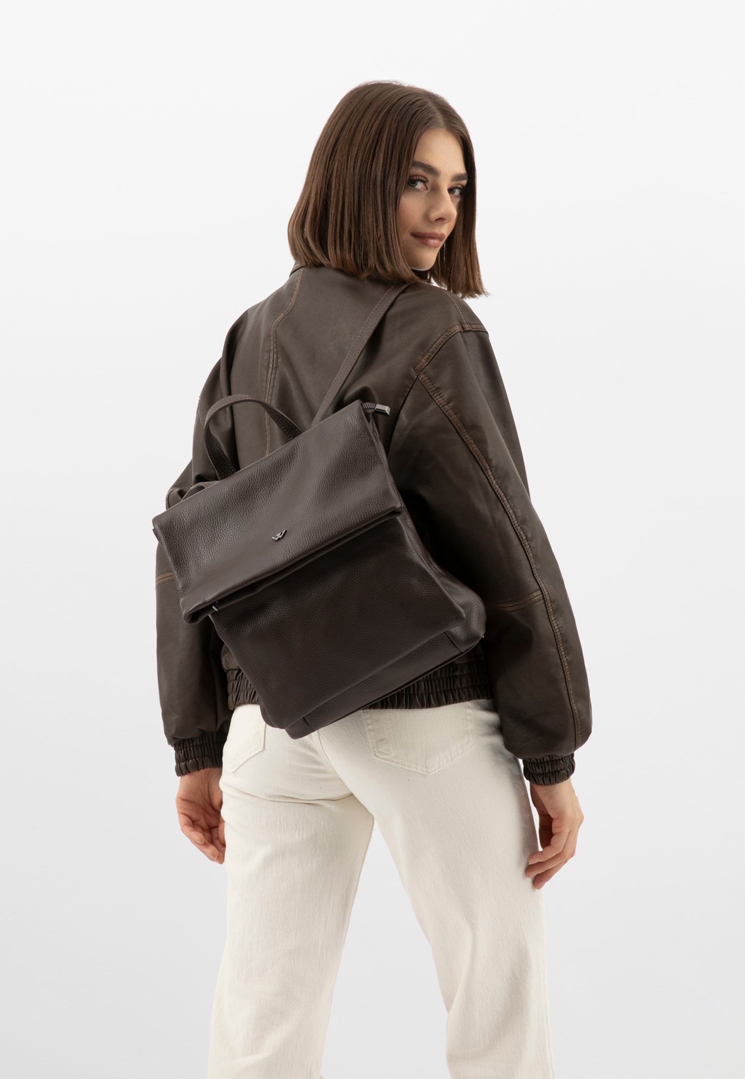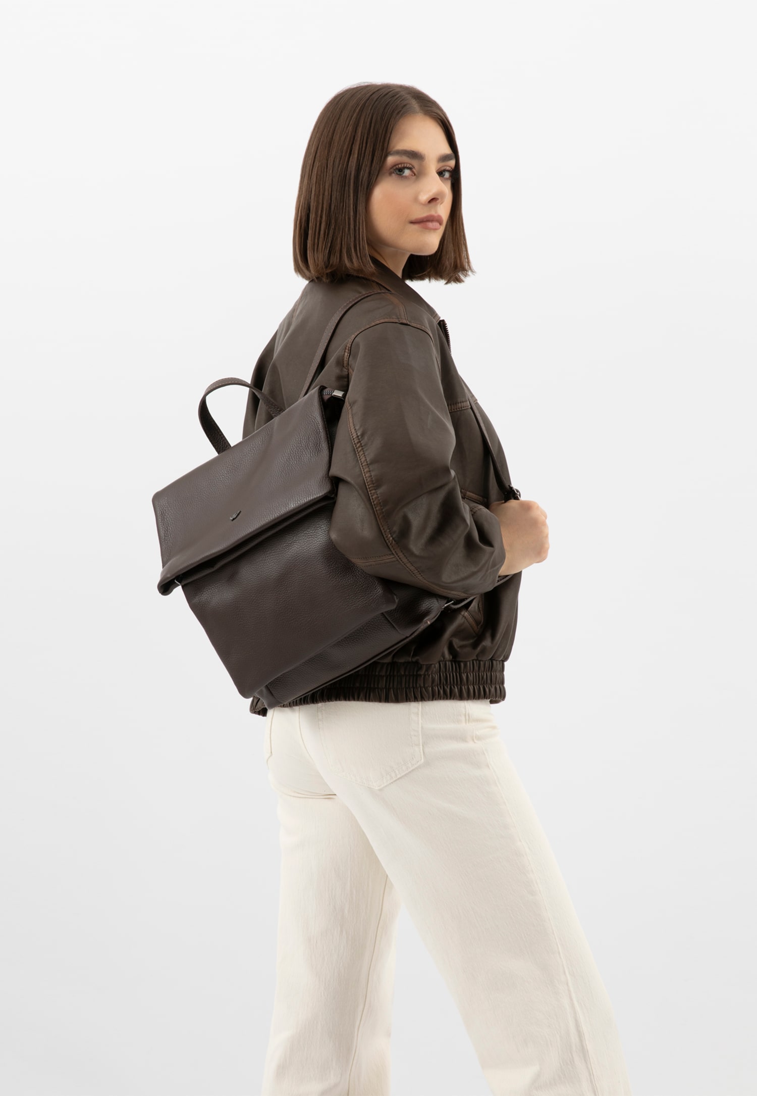 Dark brown leather city backpack